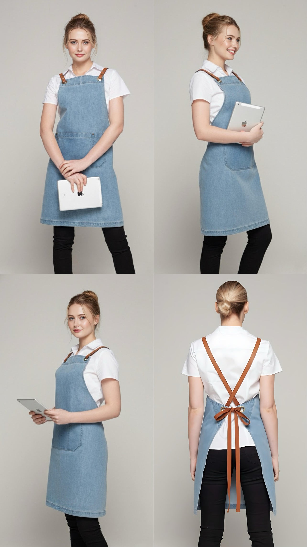• Denim Aprons may fade over time