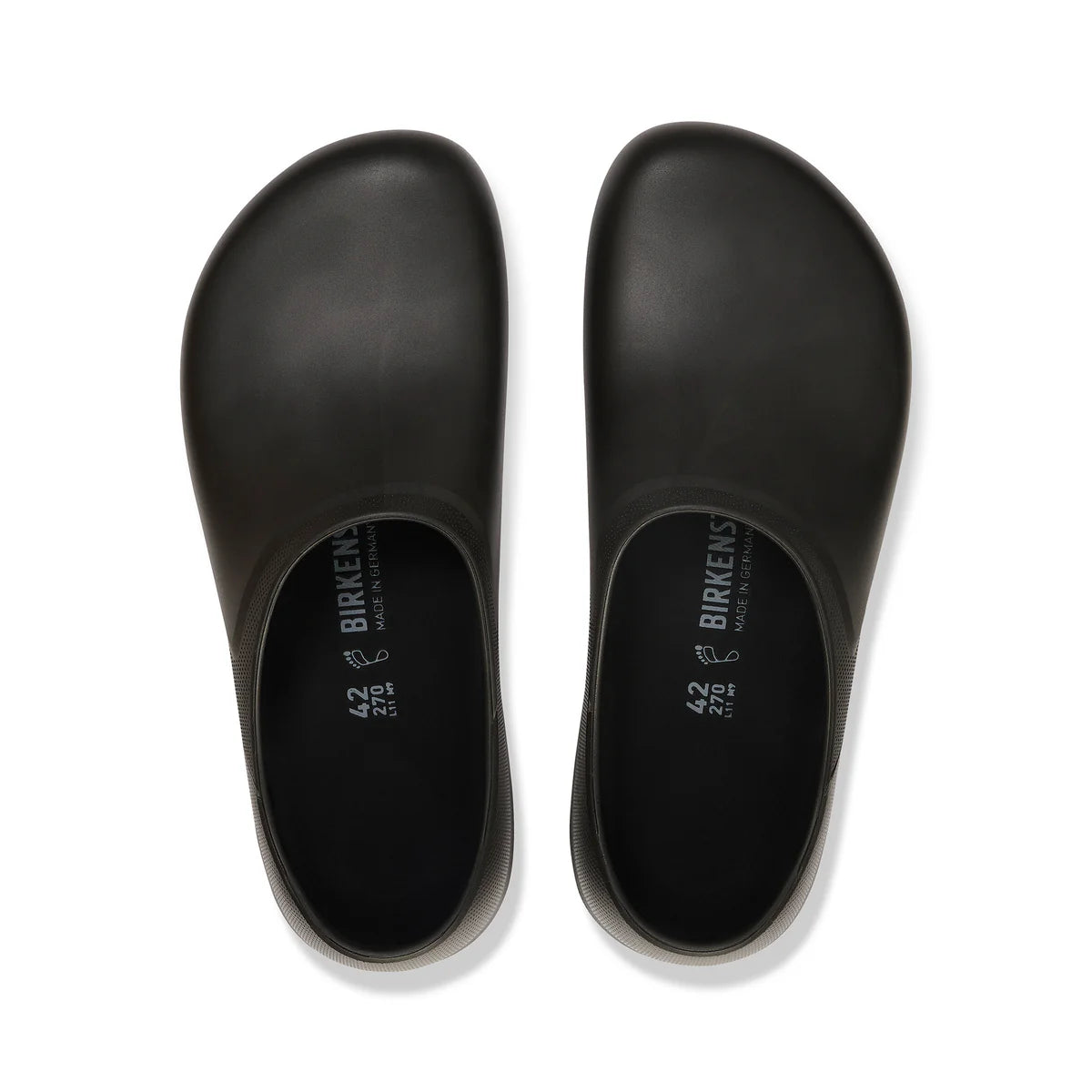 Birkenstock has replaced the old style Profi Birkis and replaced it with Profi Birki 2.0 polyurethane clog is suitable for a variety of professional applications. With its raised heel section, this popular clog provides the feet with all-around protection and grip. The flexible PU material features a smooth surface which is not only oil- and grease-resistant, but also water- and dirt-repellent. The Profi Birki 2.0 is therefore suited in particular to use in kitchens and restaurants. Birkenstock sets high safety standards in terms of sole design: the directly foamed, flexible PU sole features a slightly deeper tread, thus ensuring a firm grip on many surfaces. Anyone who has to stand up for several hours at a time due to their job will appreciate the high level of comfort, which is partly down to the interchangeable and anatomically shaped Birkenstock footbed with a microfiber lining. This makes the Profi Birki 2.0 suitable for the wearer’s own personal insoles. What’s more, the clog is washable at up to 80°C and the polyurethane footbed at up to 60°C, guaranteeing a high degree of hygiene.