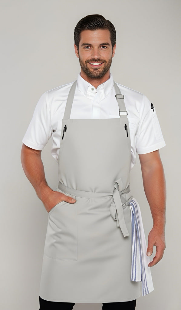 Your uniform and what you wear to work should be something you take pride in, something you love to put on every day, and something that represents you and your company. Our job is to make sure we can find this perfect piece for you, customise it, and make sure you’re 100% satisfied and protected when you’re at work. With our wide range of chefs aprons, all of which are designed in-house, it is all but guaranteed that you’ll find the perfect fit for your needs, whatever they might be.