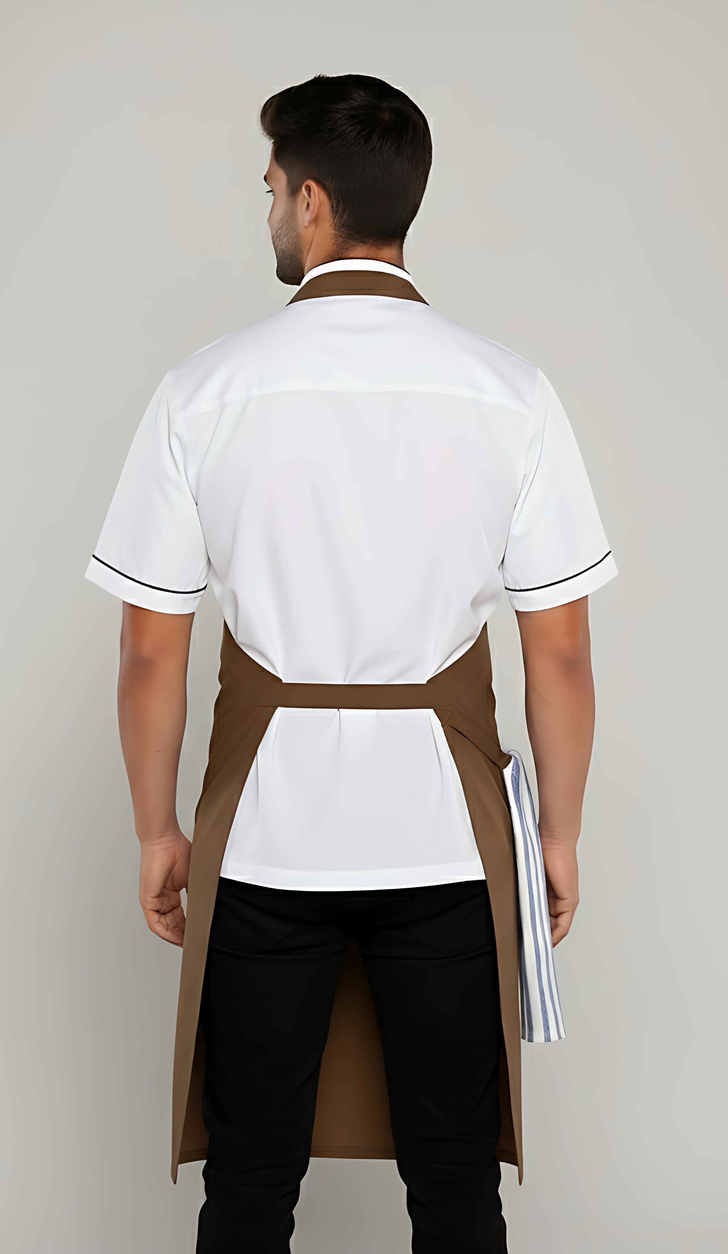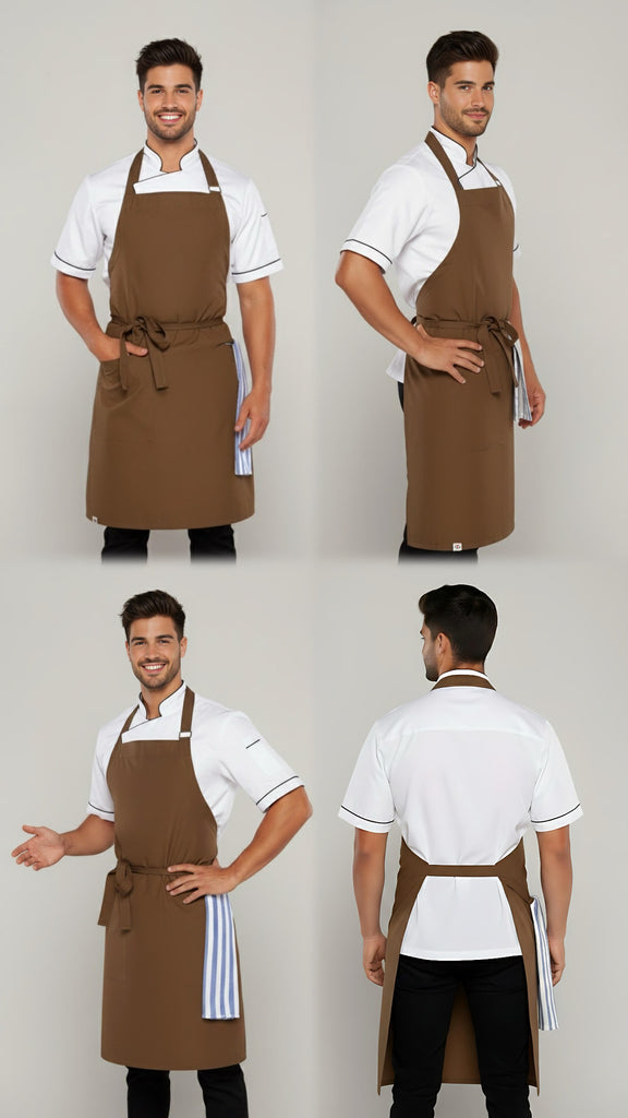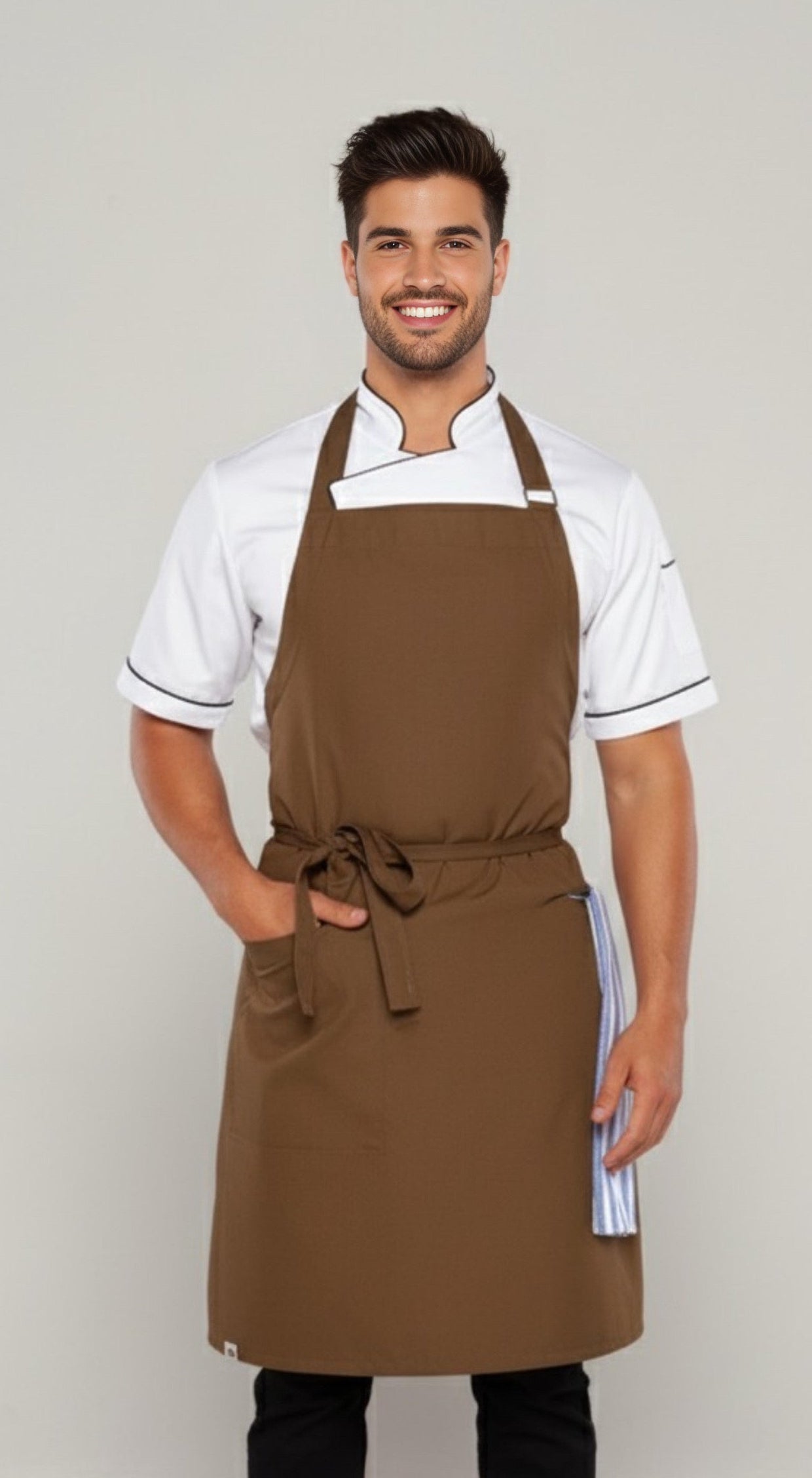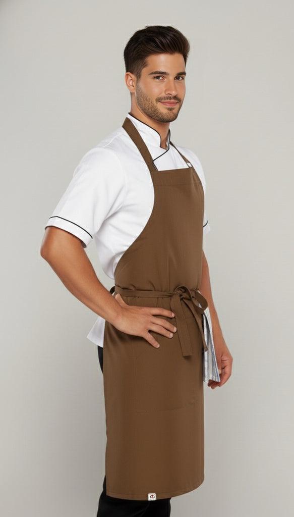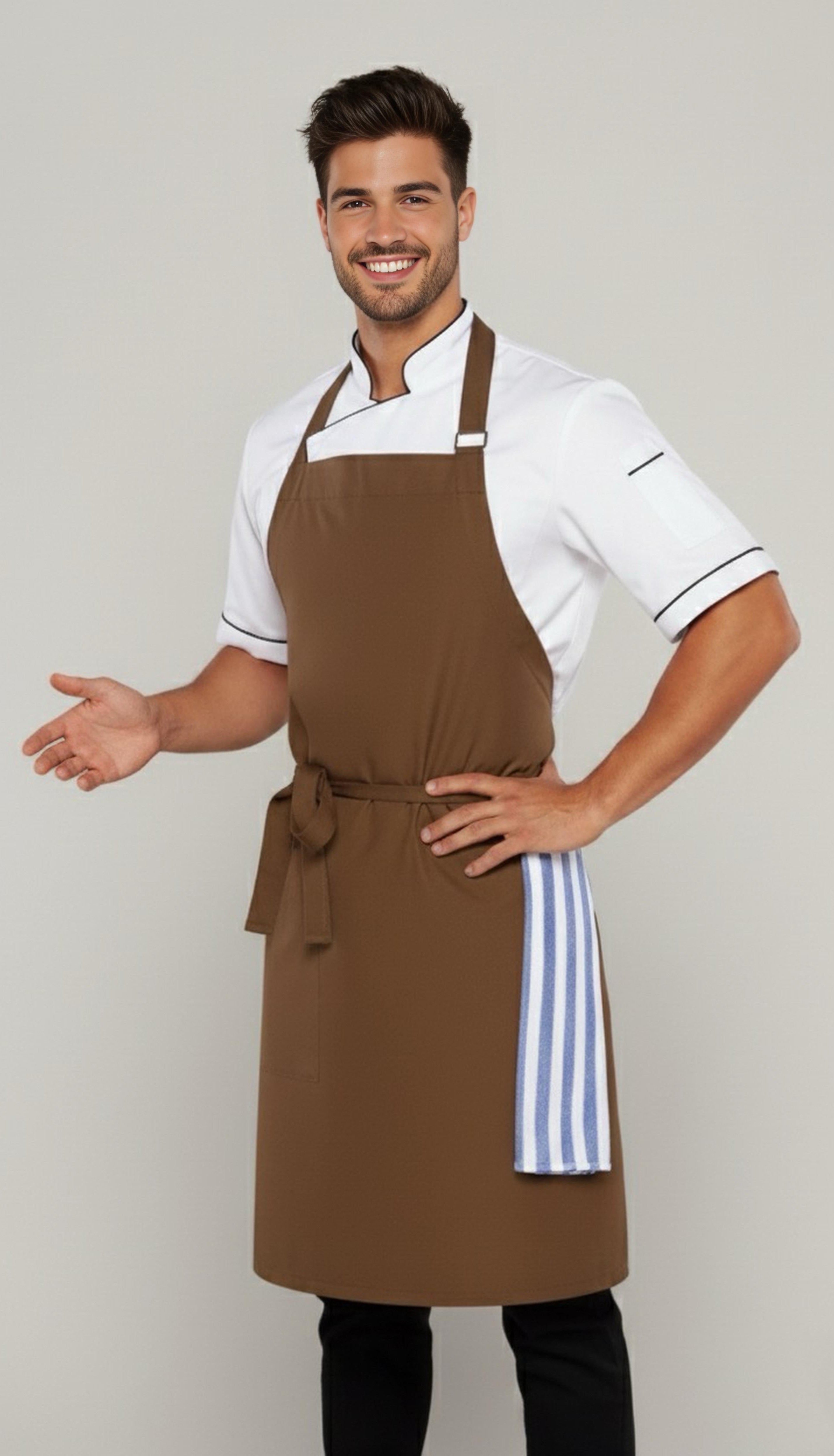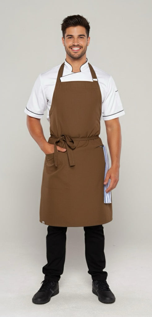 The Model in the picture is 5'7" tall. This Apron will suit anyone up to 6 feet Tall.