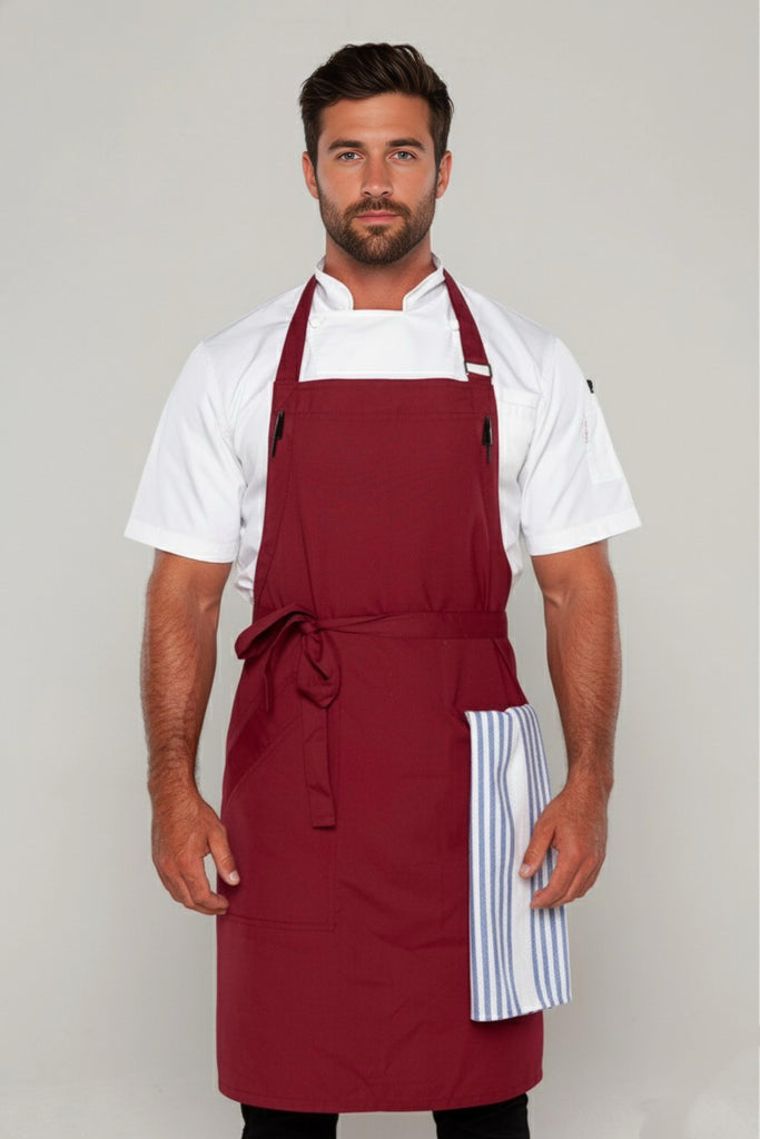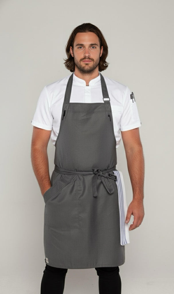 Your uniform and what you wear to work should be something you take pride in, something you love to put on every day, and something that represents you and your company. Our job is to make sure we can find this perfect piece for you, customise it, and make sure you’re 100% satisfied and protected when you’re at work. With our wide range of chefs aprons, all of which are designed in-house, it is all but guaranteed that you’ll find the perfect fit for your needs, whatever they might be.