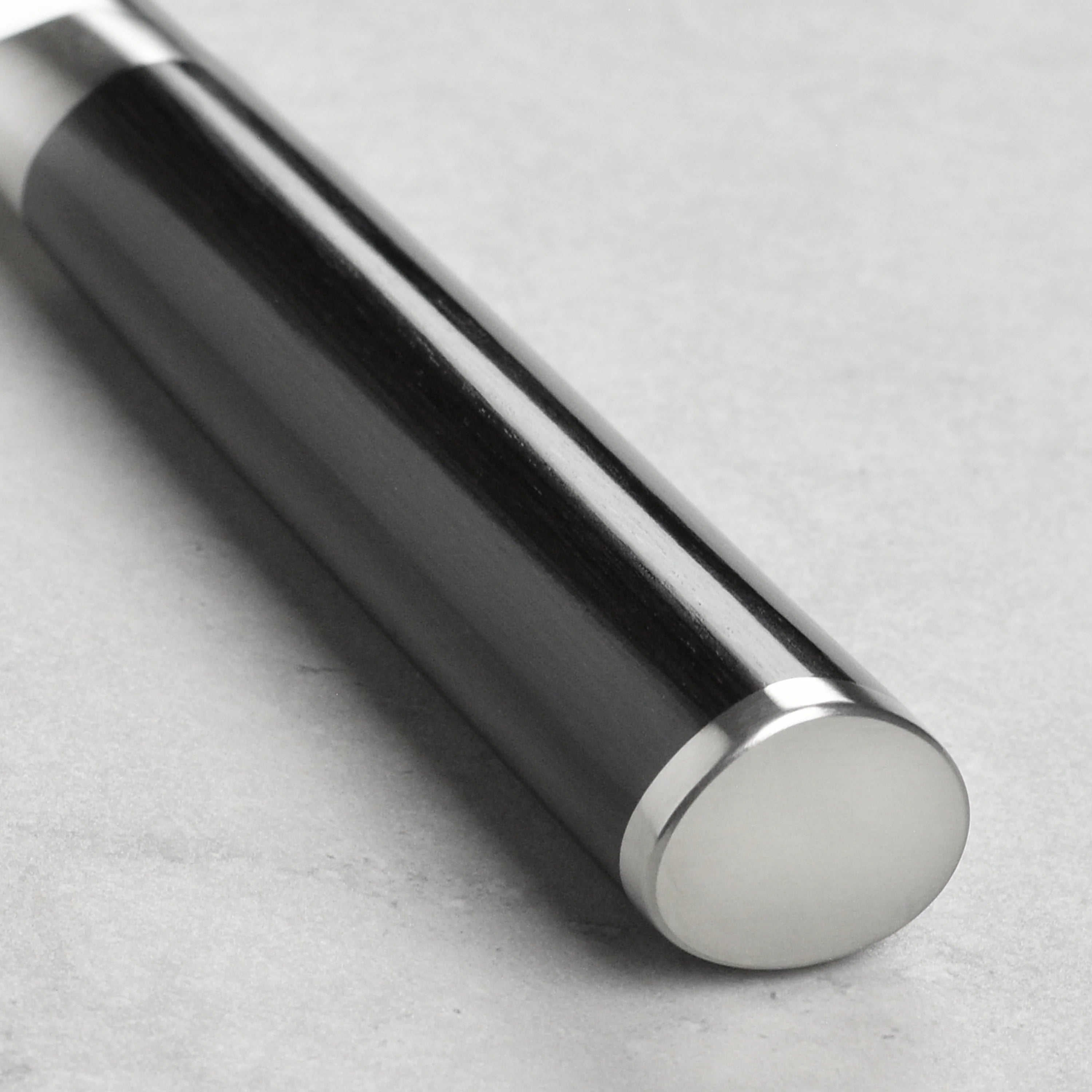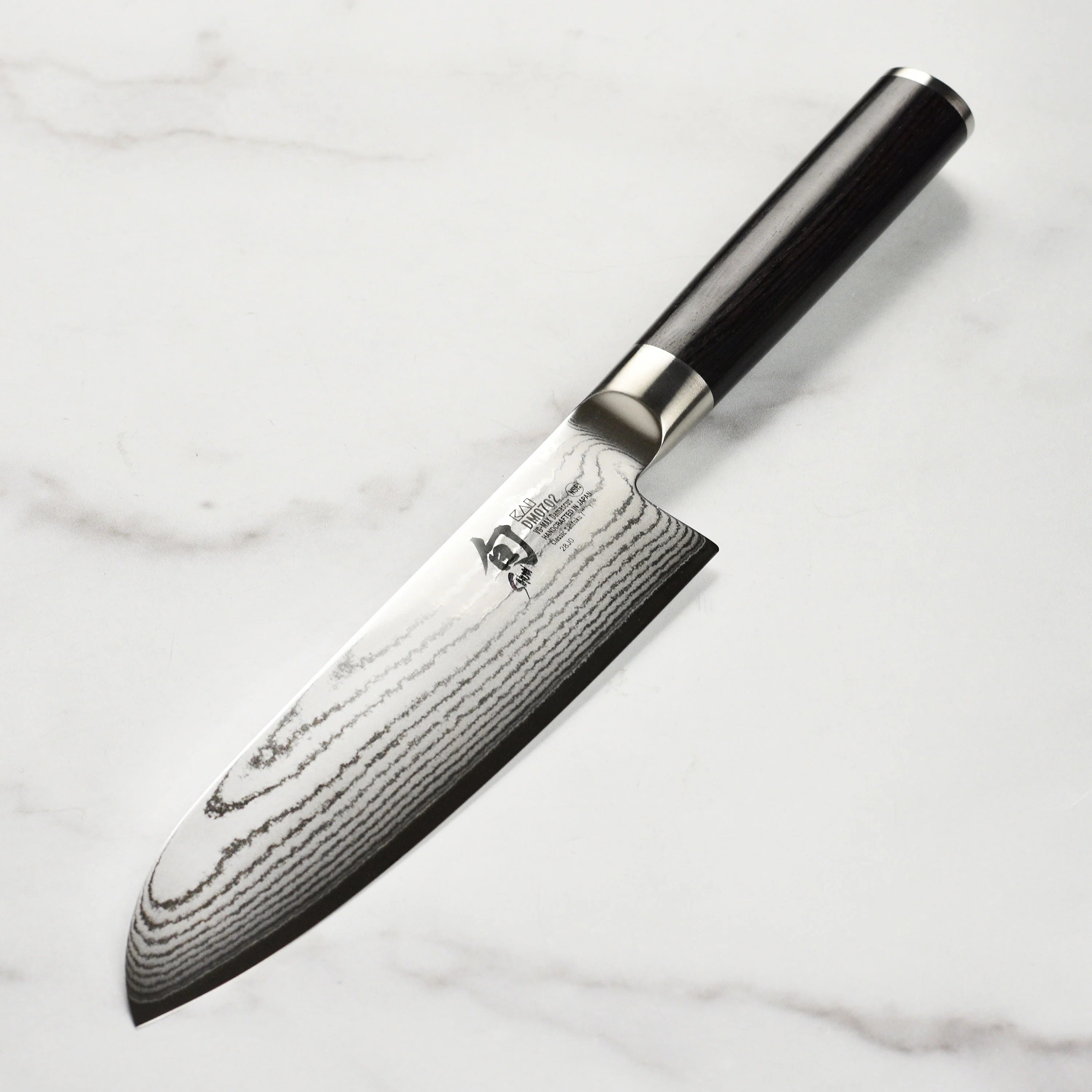 The Shun Classic 16.5cm Santoku Knife is part of the Shun Classic line of tasteful and contemporary cutlery. The Shun Classic line features beautiful Damascus-clad blades and D-shaped ebony PakkaWood handles. Yet behind these handcrafted knives' beauty is function: razor-sharp blades offering top performance. Shun's proprietary high-performance VG-MAX steel, which provides incredible edge retention, is clad with Damascus stainless steel, then ground and bead-blasted, revealing the flowing pattern of the layered steel. The result is a line of knives that are sharp, durable, and corrosion resistant, as well as beautiful to behold. The Shun Classic line also offers you the widest assortment of both traditional culinary blade shapes and cutting-edge designs, so you can always find the right knife for the task.