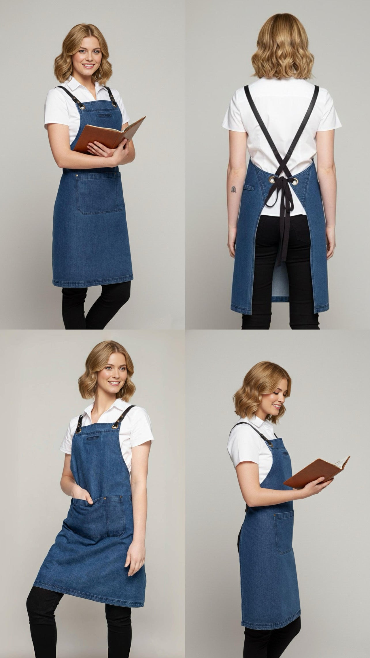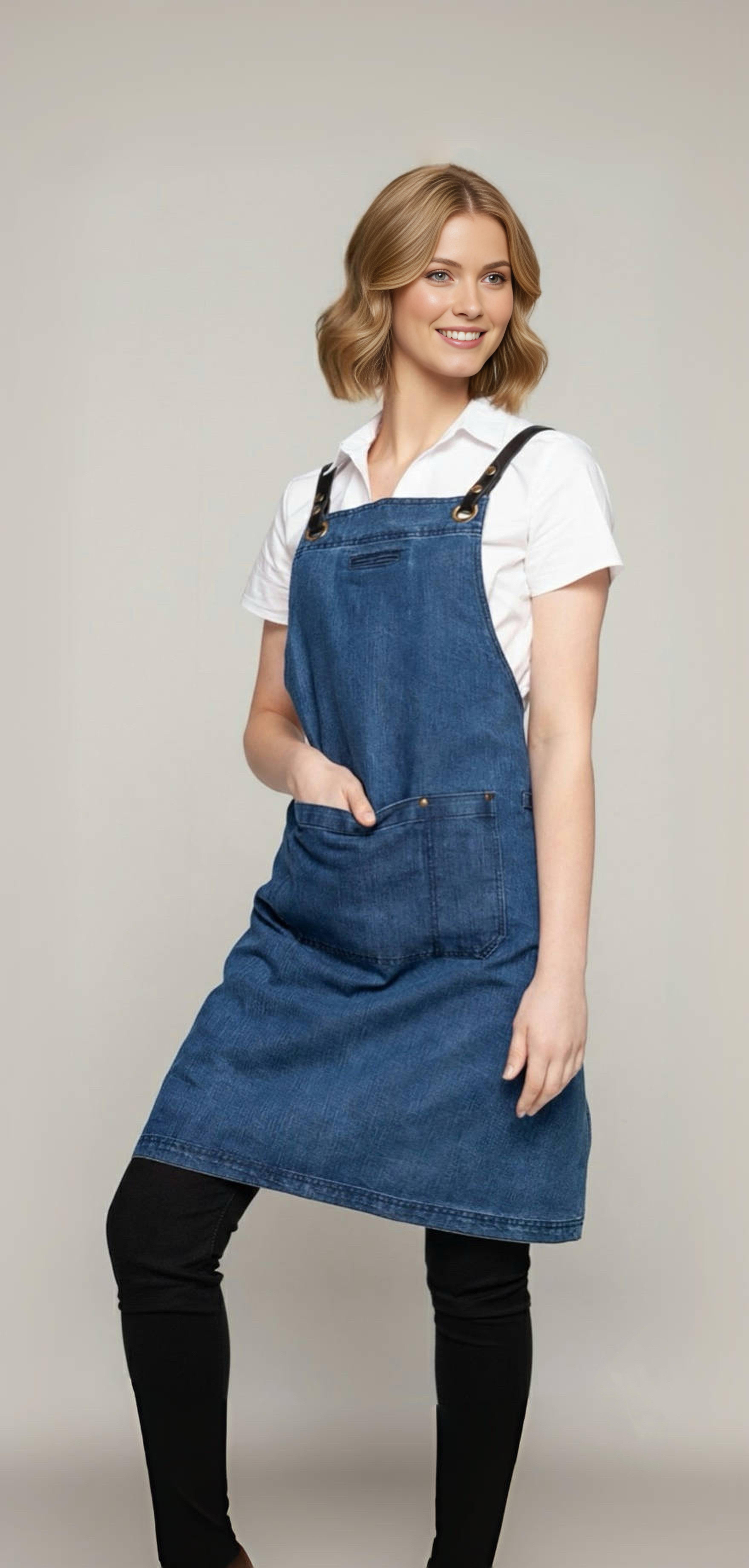 • Denim Aprons may fade over time