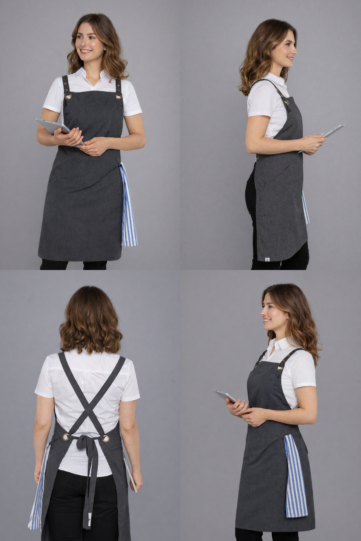 The Bondi Crossover Apron – Interchangeable Straps is designed for hospitality professionals who need durability, comfort, and a modern look during long shifts.