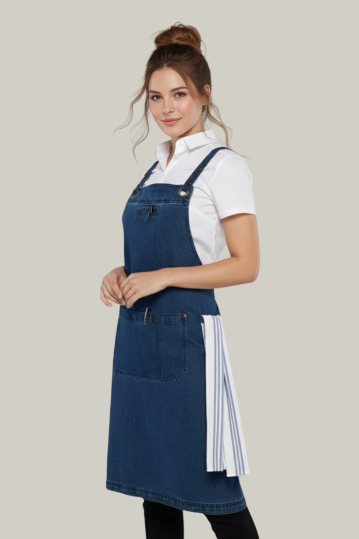 The Bondi Crossover Apron – Interchangeable Straps is designed for hospitality professionals who need durability, comfort, and a modern look during long shifts.