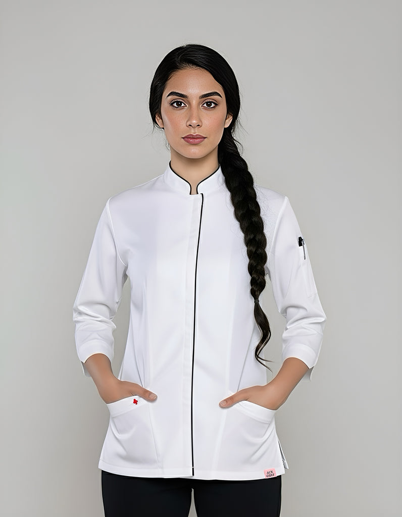 Our exclusive range of women's chef coats and Women's jackets is here to help you perform with confidence, style, and safety. Whether you’re an executive chef running the show at a Michelin-star restaurant or a budding chef just starting off in the hospitality industry, our jackets feature a modern design, and gorgeous black and white color schemes, which are easy to wash, dry, and iron. Built to last all the harsh conditions of a kitchen, we cater to women's and men's cuts, contemporary designs, or something simpler, embroidered or not!