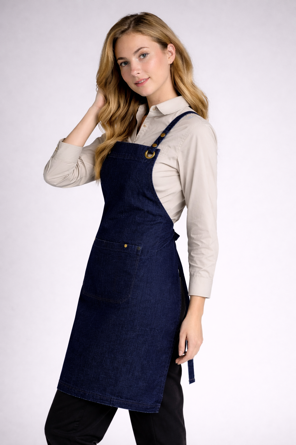 The Bondi Crossover Apron – Interchangeable Straps is designed for hospitality professionals who need durability, comfort, and a modern look during long shifts.