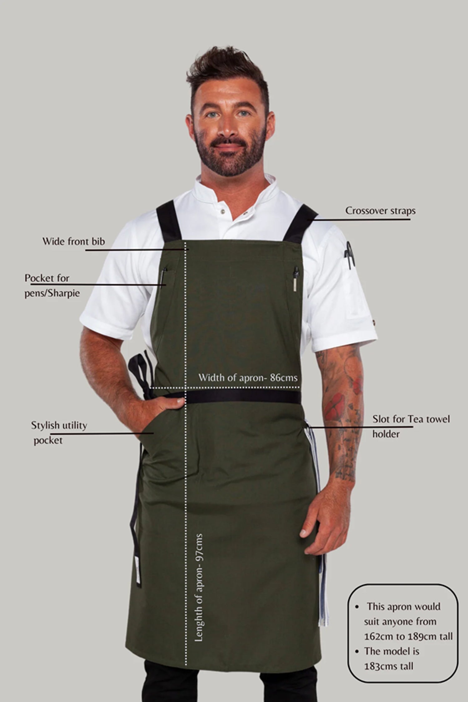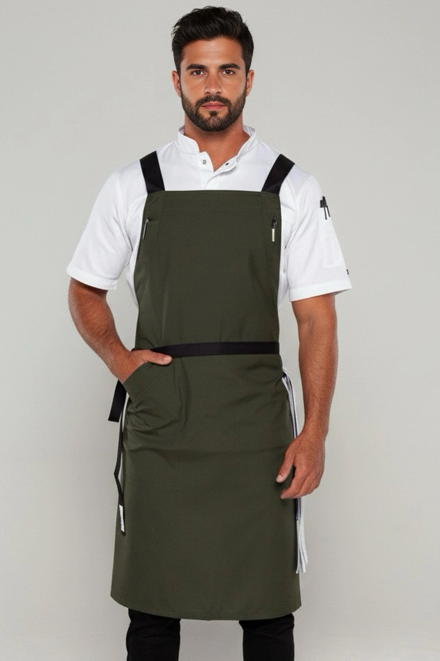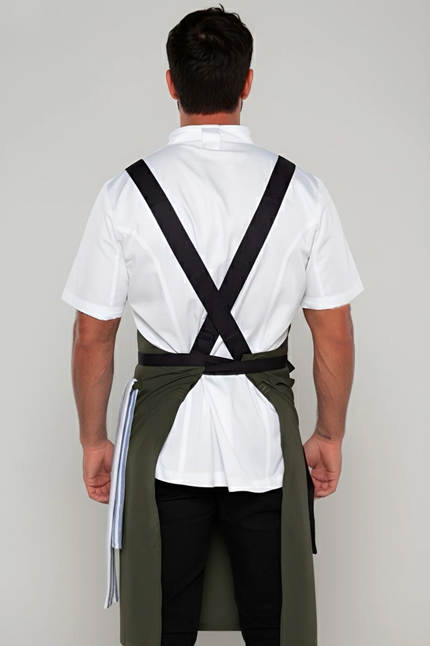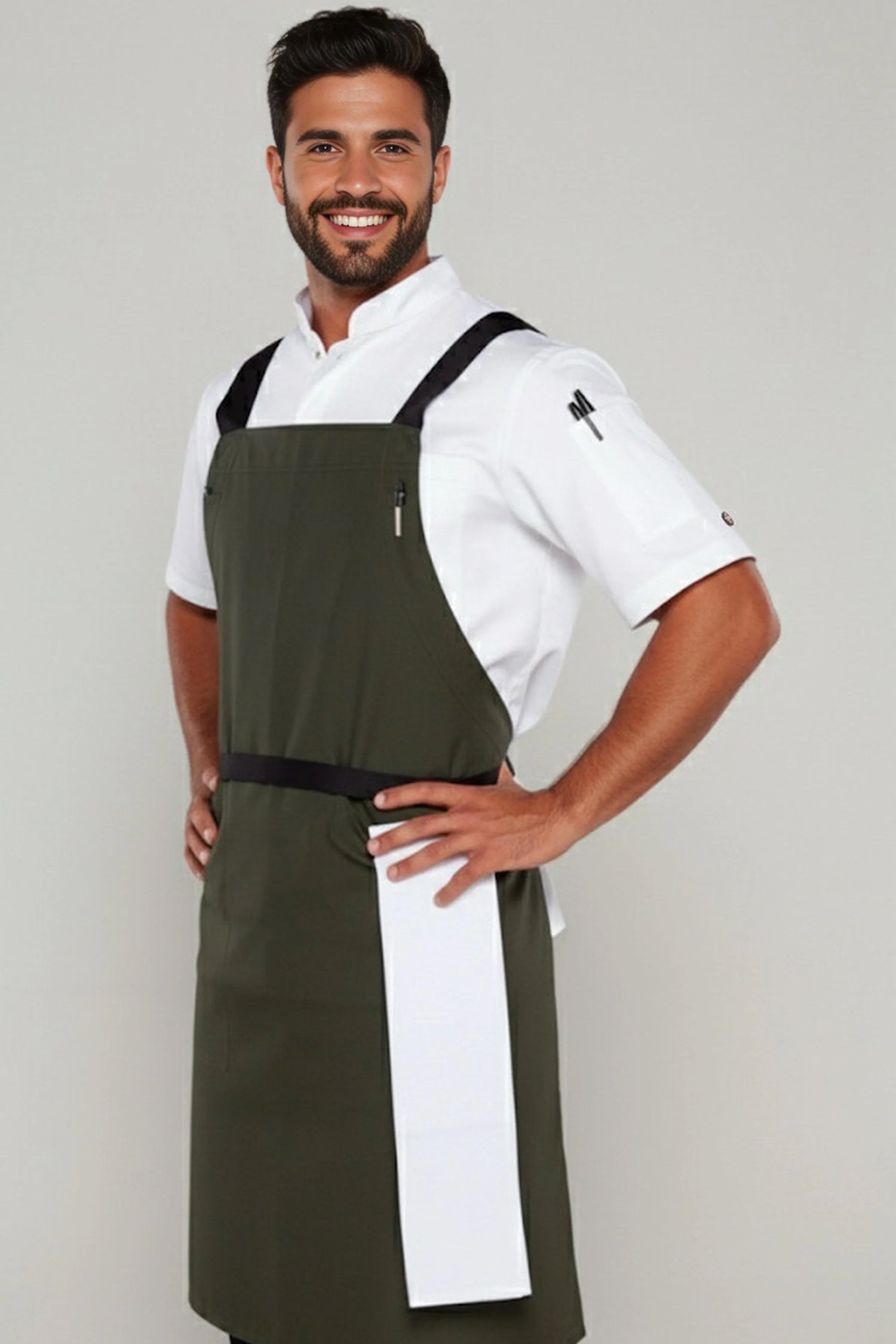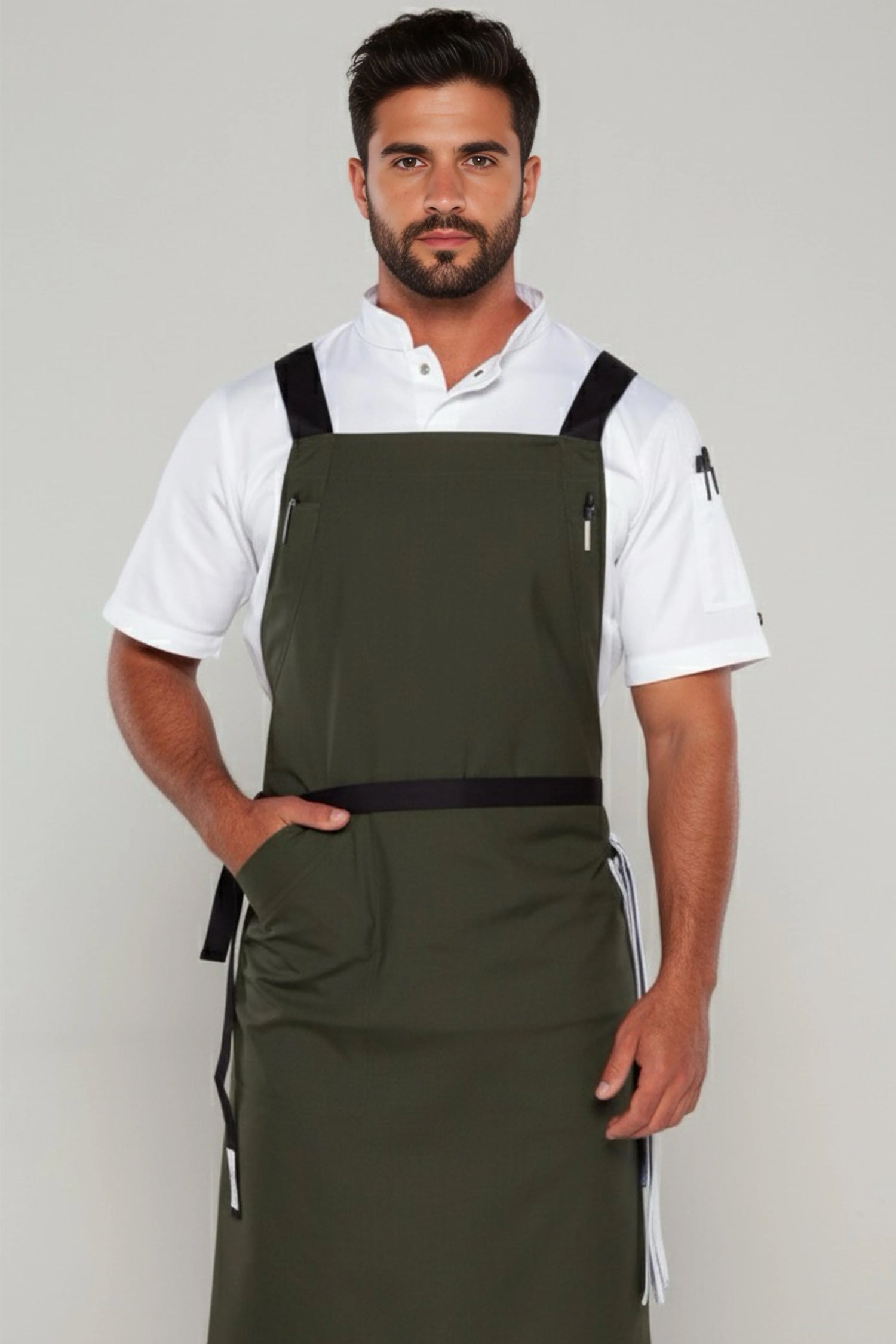 Byron Cross-Back Chef Apron is designed for hospitality professionals who need durability, comfort, and a clean modern look during long shifts.