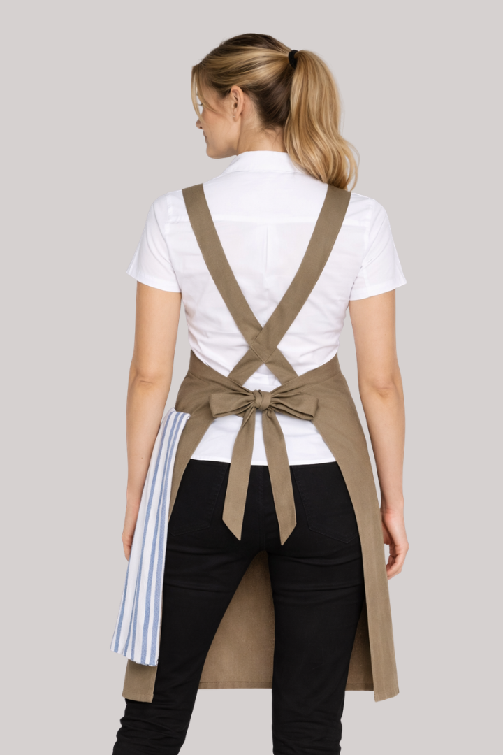 The Orthodox Cross Over Apron is designed for hospitality professionals who need comfort and durability during long shifts.